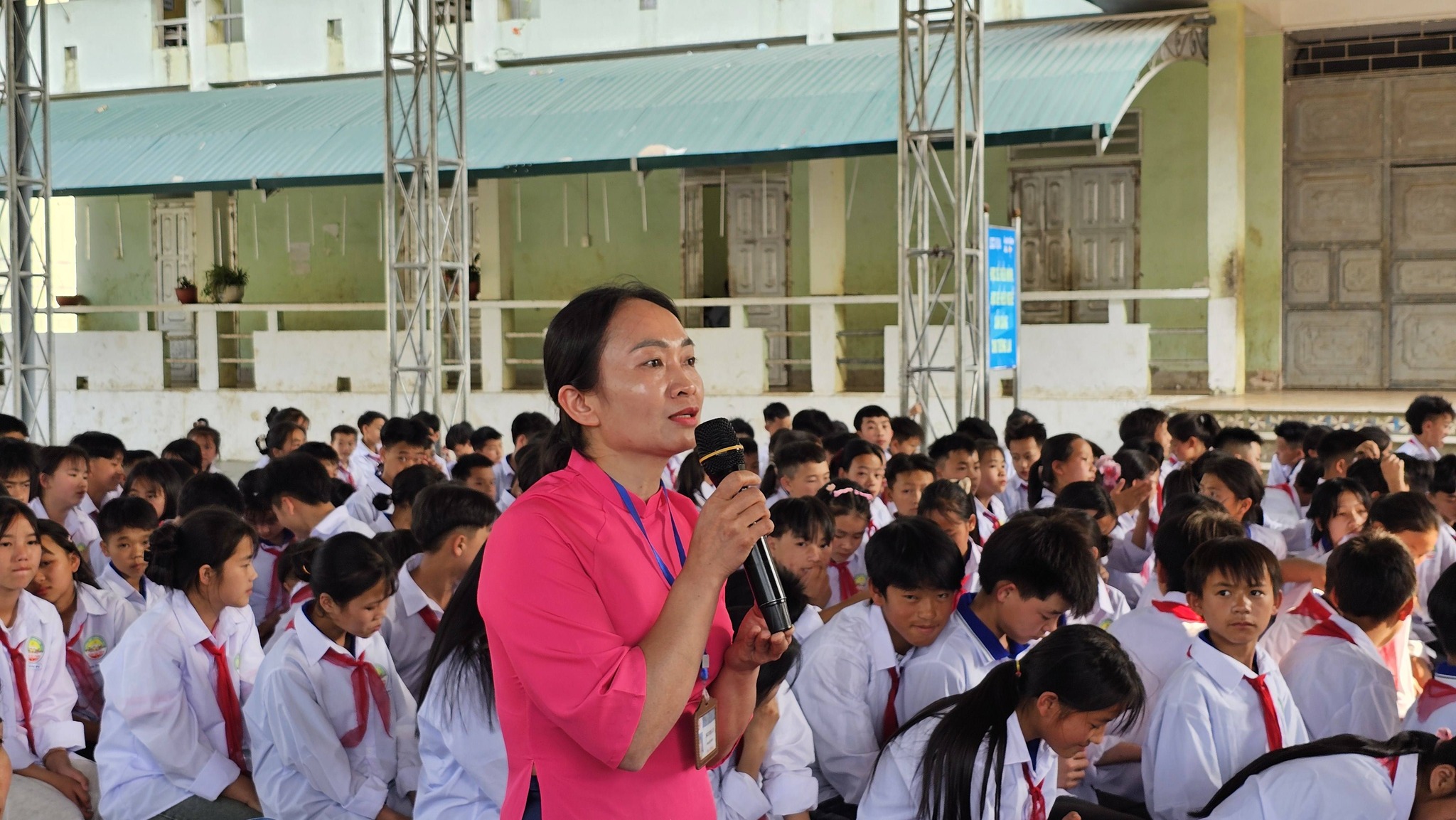 Mở đầu buổi đối thoại, lãnh đạo nhà trường đã báo cáo tóm tắt kết quả lãnh đạo, chỉ đạo thực hiện các hoạt động giáo dục của nhà trường trong thời gian qua. Bên cạnh những kết quả đạt được, đồng chí Hiệu trưởng cũng thẳng thắn nêu lên những khó khăn nội tại và đề xuất Đảng ủy, HĐND, UBND xã quan tâm giúp đỡ nhà trường tháo gỡ về nguồn lực, cơ sở vật chất để đảm bảo chất lượng dạy và học. Các em học sinh mong muốn được đầu tư thêm phòng bán trú và sân chơi thể thao, phát triển các hộ gia đình làm nghề truyền thống tại địa phương, mở các lớp học thêm về năng khiếu như đàn, hát dân gian, Tiếng Anh trong thời gian hè… đồng thời đề nghị xã có cơ chế xử lý dứt điểm tình trạng học sinh bỏ học đi làm thuê…
