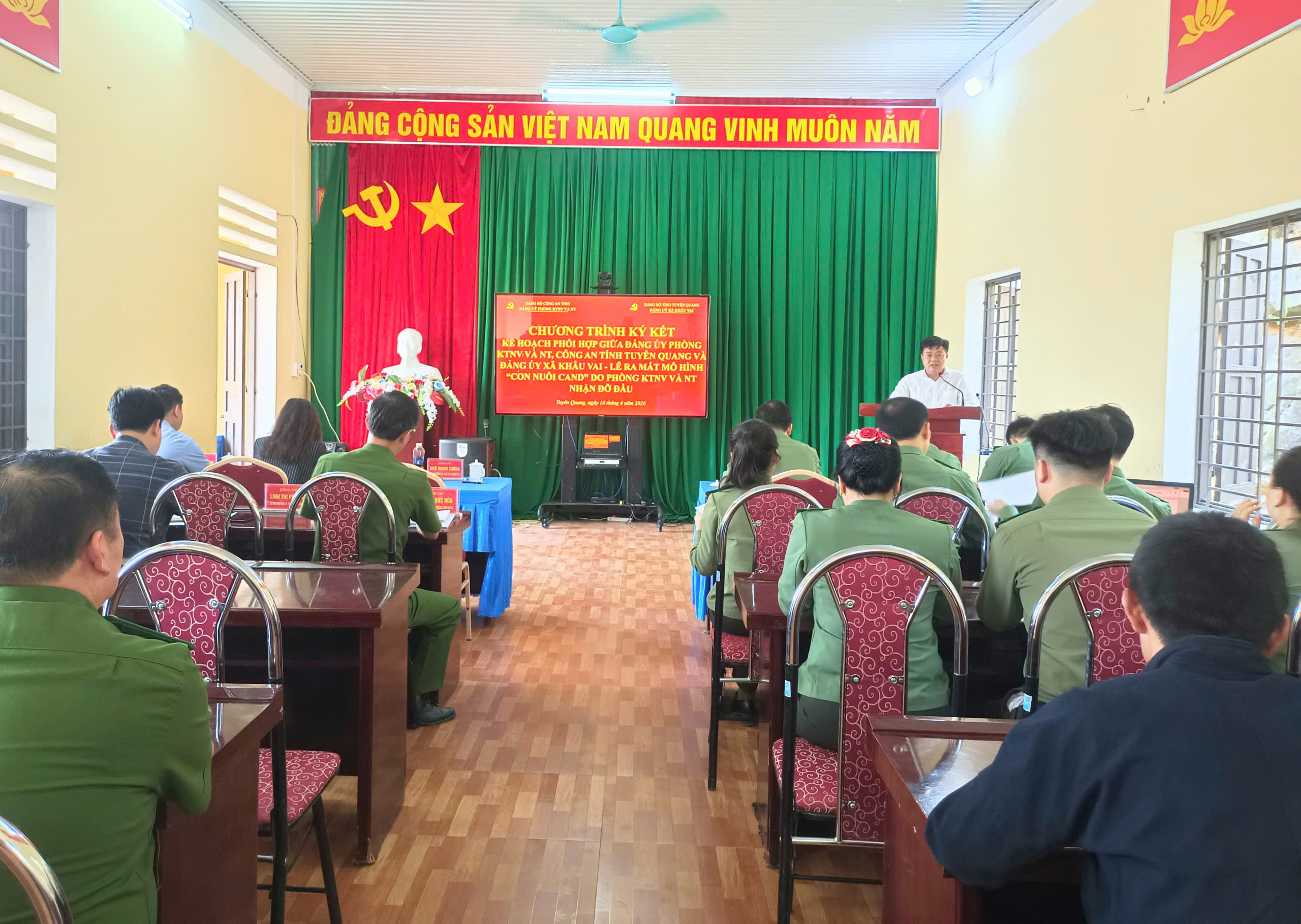 Thực hiện phong trào thi đua “Ba nhất: Kỷ luật nhất – Trung thành nhất – Gần dân nhất do Bộ Công an phát động và Nghị quyết số 55 ngày 20/01/2026 của Ban Thường vụ Tỉnh ủy về lãnh đạo đổi mới, nâng cao hiệu quả công tác dân vận trong tình hình mới, tăng cường mối quan hệ mật thiết giữa Đảng với nhân dân. Dịp này, Phòng KTNV&NT Công an tỉnh Tuyên Quang ký kết Kế hoạch phối hợp với Đảng ủy xã Khâu Vai về thực hiện công tác an sinh xã hội, giảm nghèo bền vững, xây dựng nông thôn mới, xóa bỏ hủ tục lạc hậu, bảo tồn và phát huy giá trị bản sắc văn hóa truyền thống tốt đẹp của các dân tộc, bảo đảm an ninh trật tự, tham gia xây dựng hệ thống chính trị ở cơ sở.