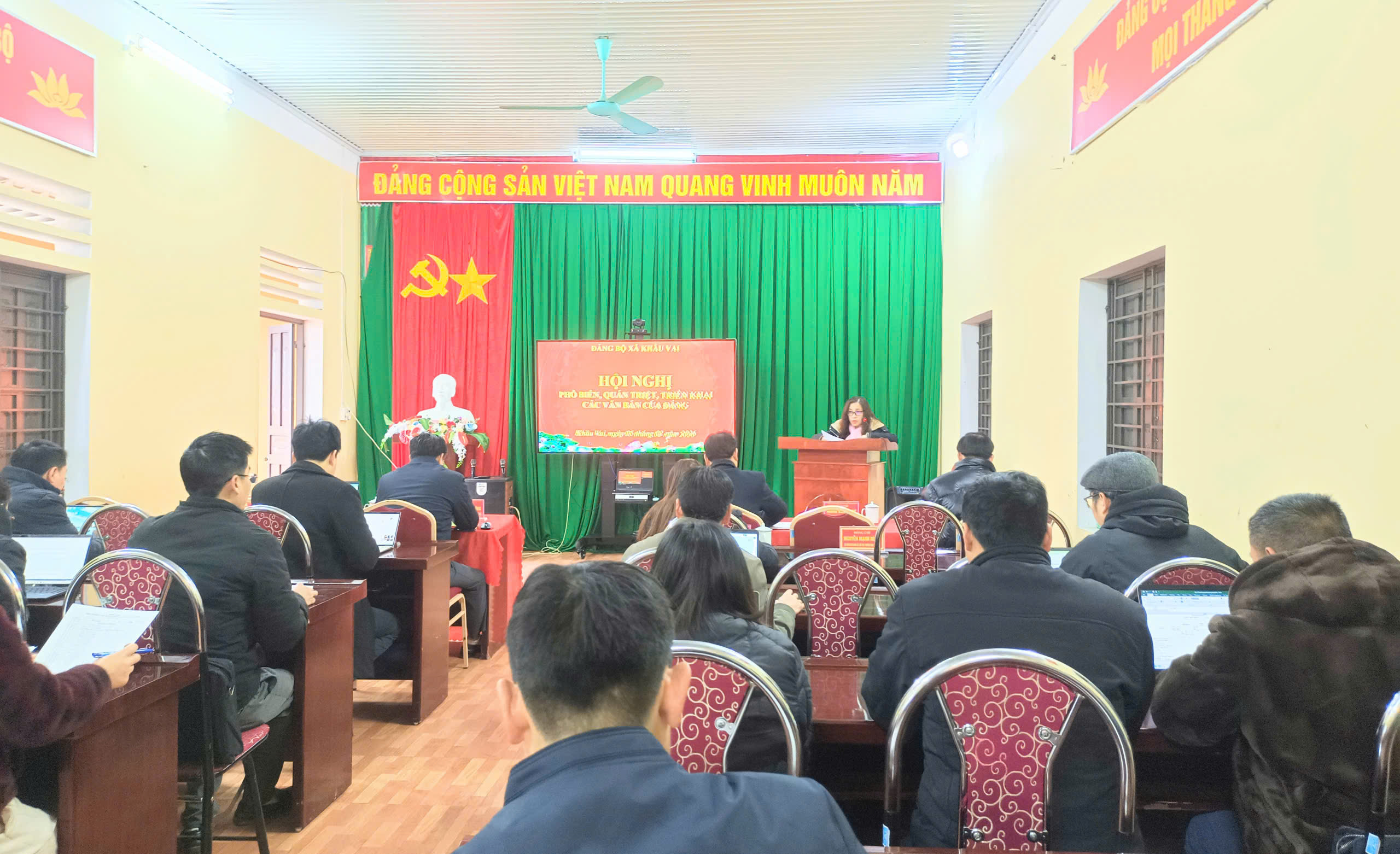 Hội nghị quán triệt các văn bản của Đảng là dịp quan trọng để nâng cao bản lĩnh chính trị, củng cố niềm tin, tạo sự thống nhất cao trong nhận thức và hành động của cán bộ, đảng viên, góp phần xây dựng Đảng bộ xã Khâu Vai ngày càng trong sạch, vững mạnh, đáp ứng yêu cầu nhiệm vụ trong tình hình mới.