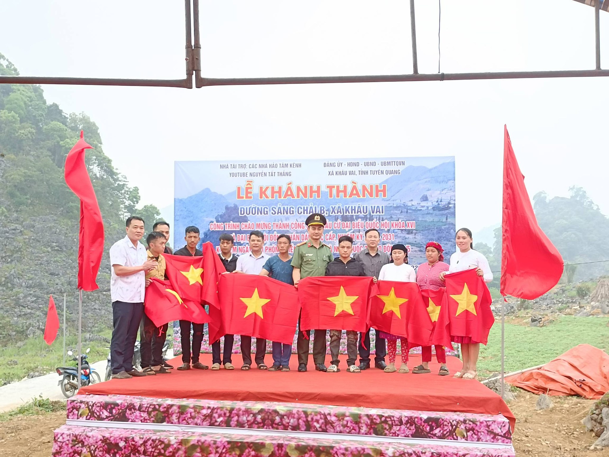 Trước đây, do nguồn lực đầu tư của Nhà nước còn hạn chế, thôn Sảng Chải B mới chỉ có đường bê tông đến trung tâm thôn; các tuyến đường nội thôn dẫn vào các nhóm hộ chưa được bê tông hóa, gây nhiều khó khăn cho việc đi lại, giao thương và kết nối giữa các khu vực. Đời sống sinh hoạt và sản xuất của người dân vì thế cũng gặp không ít trở ngại. Trước thực trạng đó, xã Khâu Vai đã chủ động kêu gọi sự chung tay hỗ trợ từ cộng đồng. Thông qua sự kết nối của kênh YouTube Nguyễn Tất Thắng, nhiều mạnh thường quân, nhà hảo tâm đã chung sức đóng góp hơn 200 triệu đồng để mua vật liệu xây dựng tuyến đường nội thôn. Tuyến đường có chiều dài 800m, rộng 3m, dày 18cm, đáp ứng nhu cầu đi lại cơ bản của người dân. Trong quá trình thi công, công trình còn nhận được sự hỗ trợ từ Đảng ủy, HĐND, UBND xã Khâu Vai về kinh phí mua xăng dầu nghiền bột đá. Đặc biệt, người dân trong thôn đã phát huy tinh thần đoàn kết, tích cực đóng góp hơn 1.000 ngày công lao động để cùng xây dựng tuyến đường. Sau hơn 3 tháng triển khai thi công, với sự quan tâm của cấp ủy, chính quyền địa phương, sự hỗ trợ quý báu của các nhà hảo tâm và sự đồng lòng của nhân dân, tuyến đường bê tông thôn Sảng Chải B đã hoàn thành, đưa vào sử dụng trong niềm vui, sự phấn khởi của bà con. Tổng kinh phí và giá trị ngày công để hoàn thành công trình là trên 500 triệu đồng.