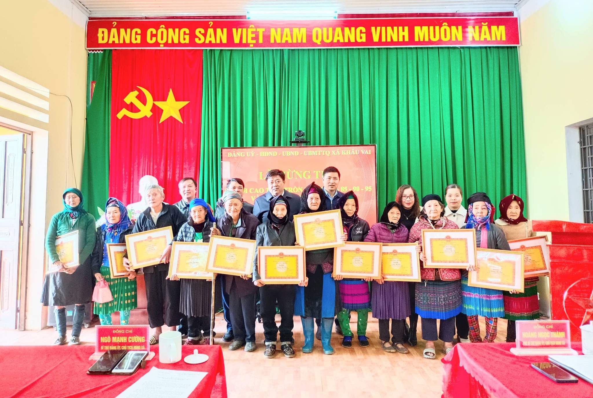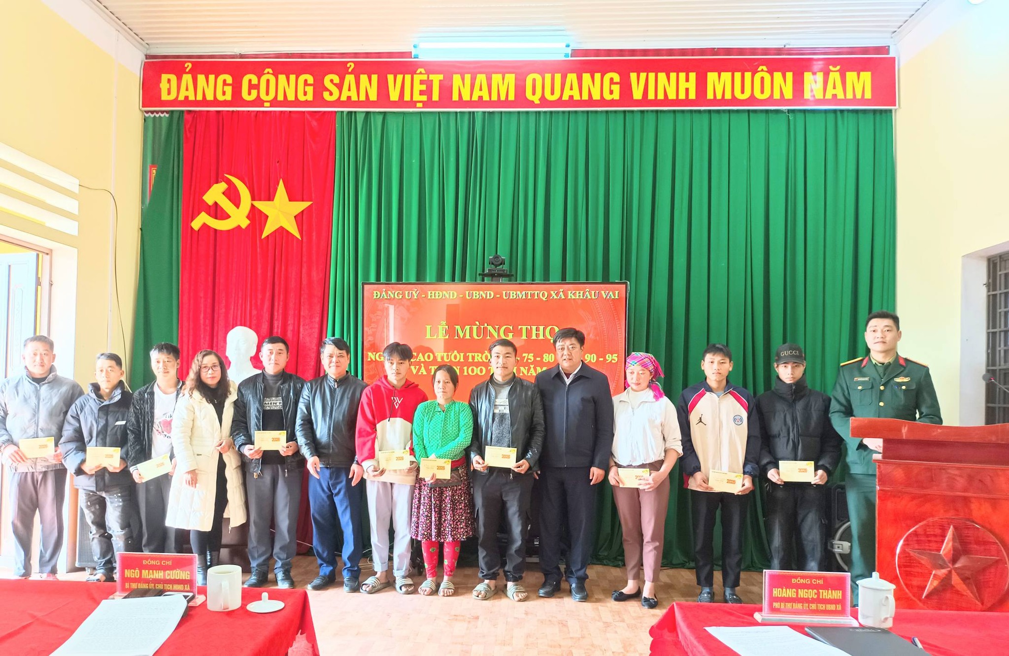 Các đồng chí lãnh đạo xã chúc thọ các cụ người cao tuổi.